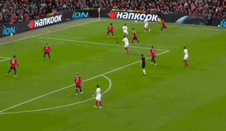 第45+3分钟,塞维利亚右路角球,尼安祖门前冲顶被德赫亚挡出,紧接着卡塞米罗又在门线上头球解围。