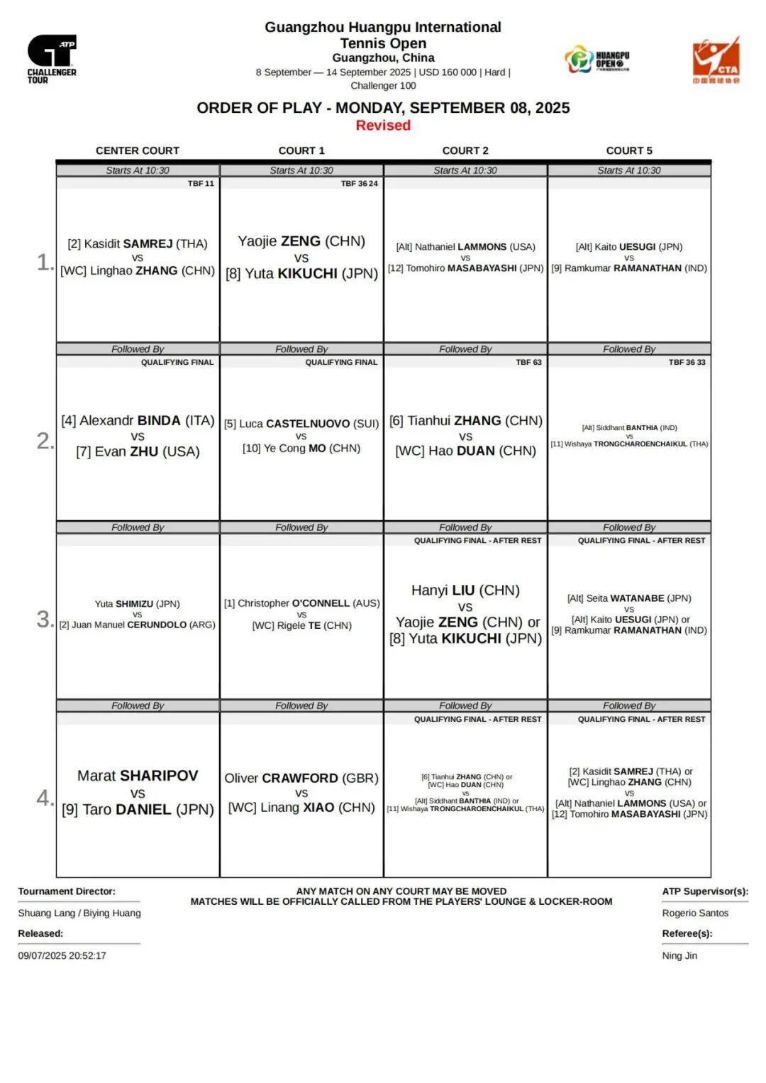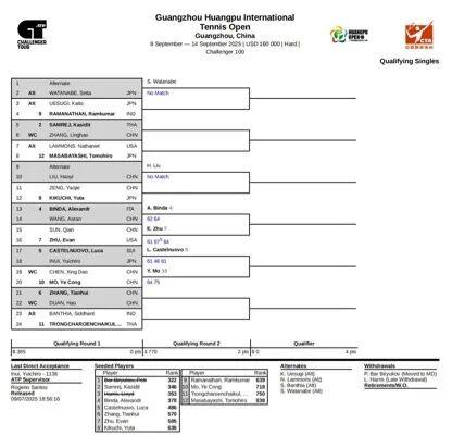 在陈醒道与莫业聪的广东队德比中,经验更胜一筹的莫业聪在关键分处理上显得更为沉稳老到,最终也顺利以2-0(6-4、7-5)战胜对手晋级资格赛次轮。