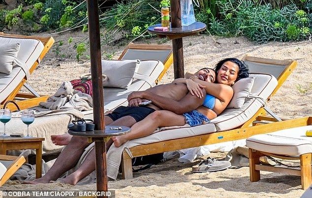 但当他们在海滩的躺椅上时,他们毫不害羞的大秀恩爱。这对情侣在海里嬉戏玩耍,在躺椅上热情拥抱,彼此不愿松开双手。